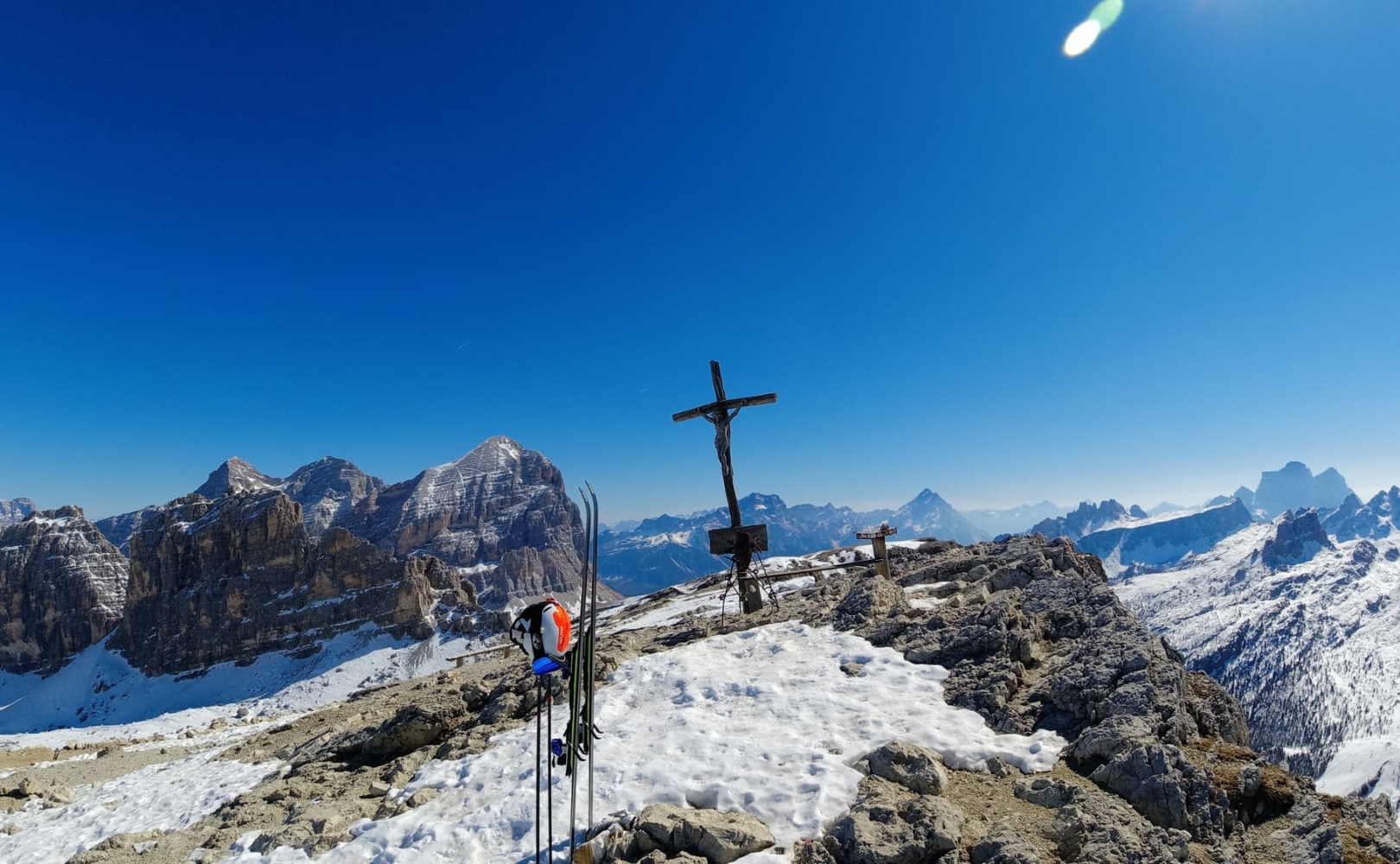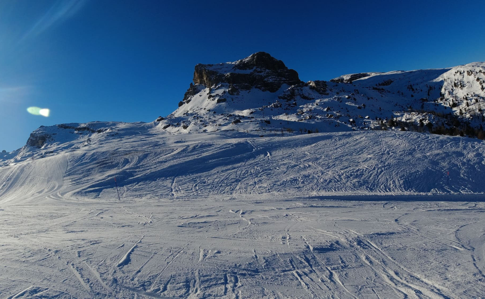 Von dort geht es mit den Skiern weiter in Richtung Sessellift/e die uns zum Tofana Schuss bringt/en. Ziel ist die Hütte POMEDES auf 2.303m. Nach einigen Schwüngen auf den Weltcup Pisten müssen wir uns wieder Richtung Gondelbahn „CORTINA SKYLINE“ aufmachen.